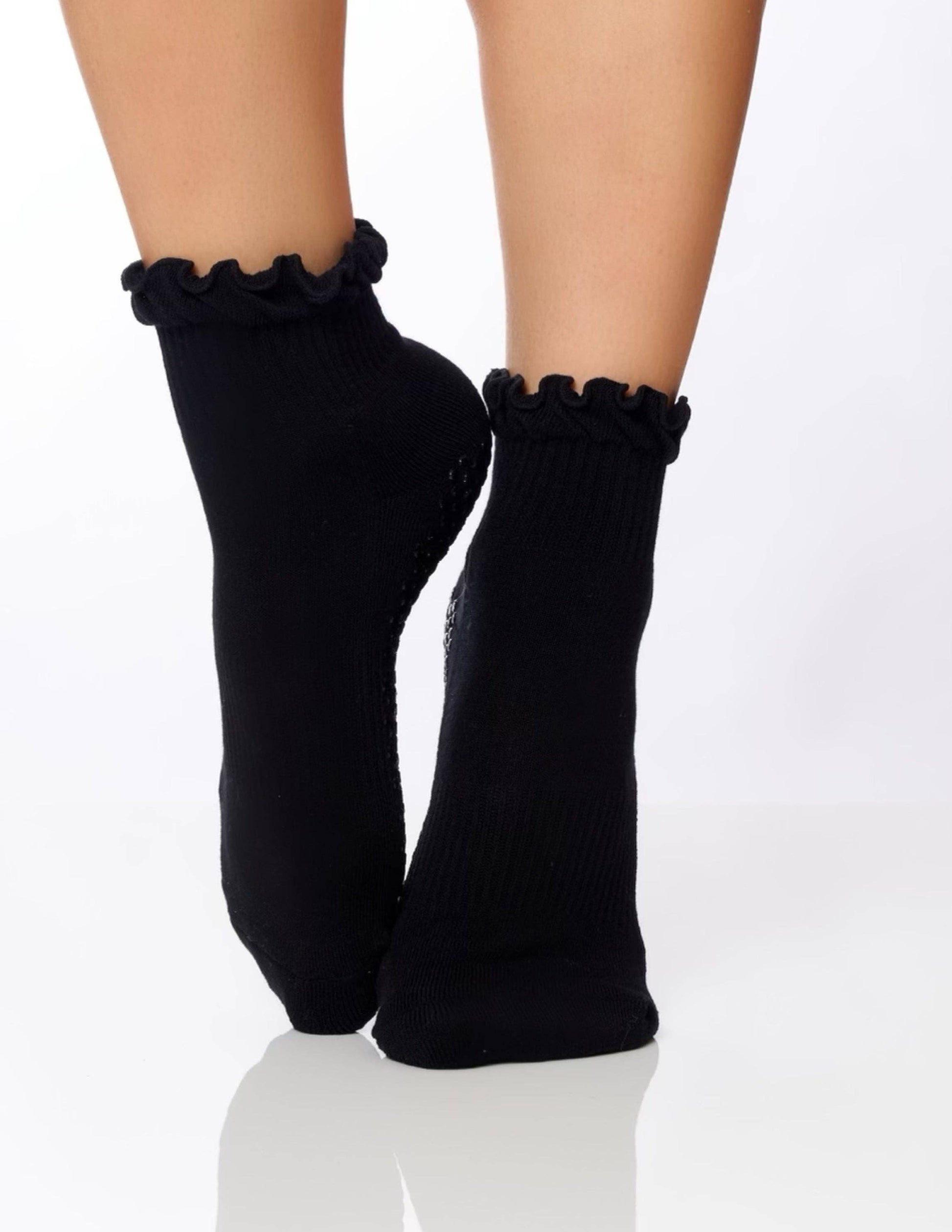 Classic and Cool! Meet our Ruffle Grip Sock. Our crew height sock style with ruffle edge and black grip coating. Your new studio fav!