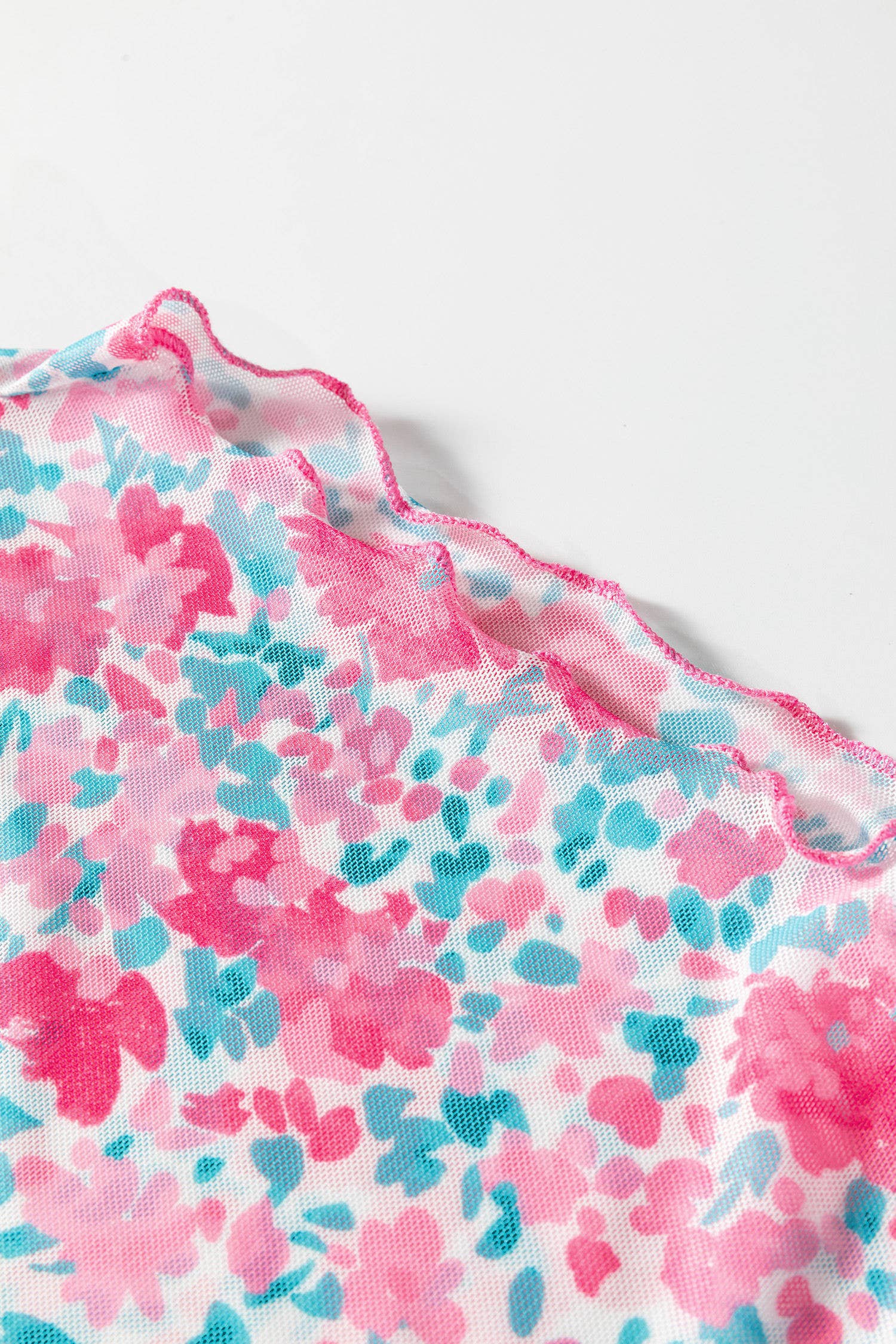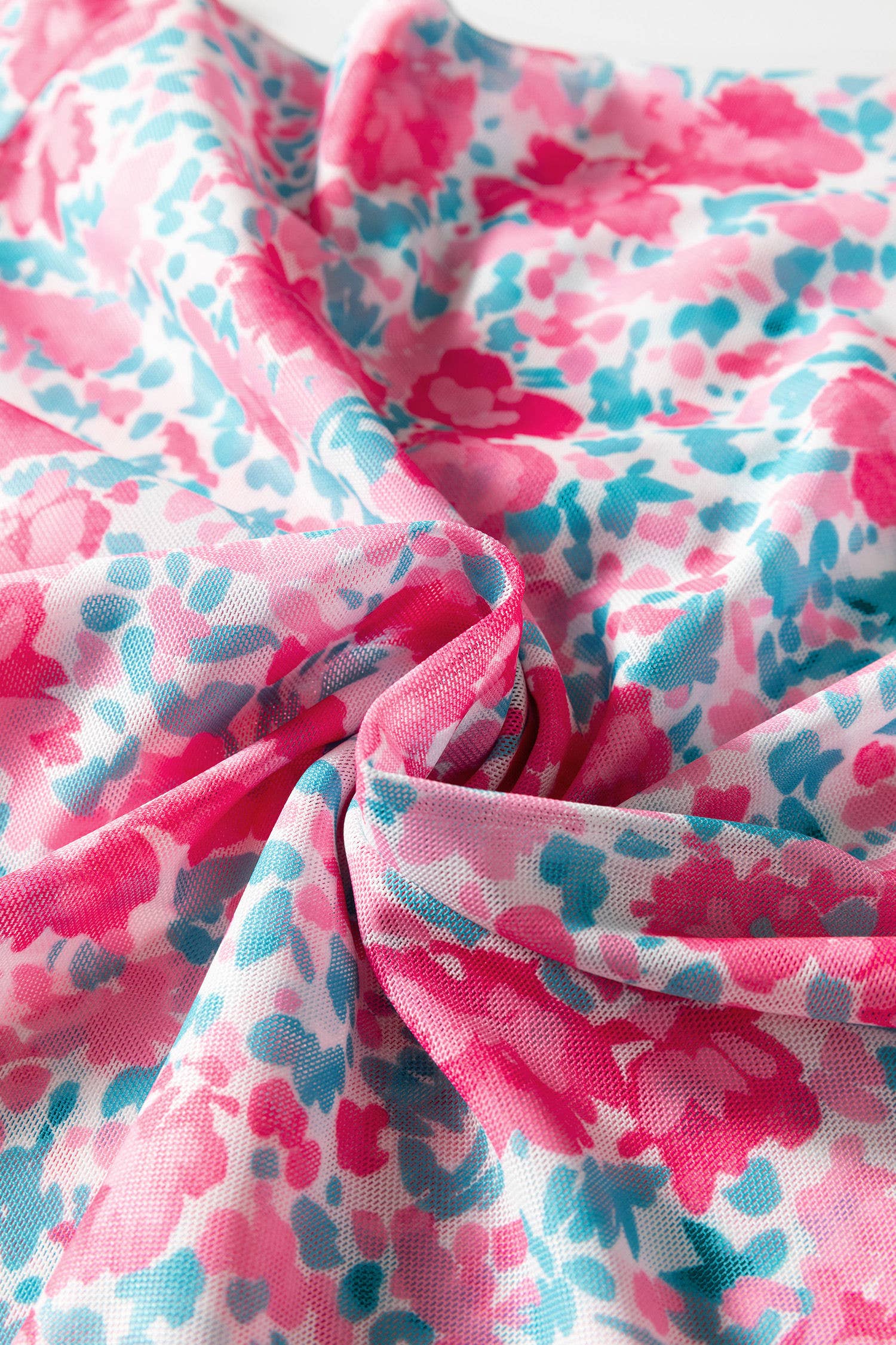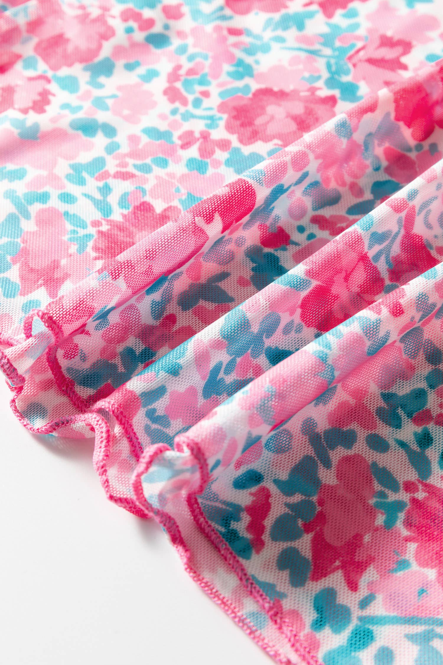 Floral print mesh adds a delicate, feminine touch.