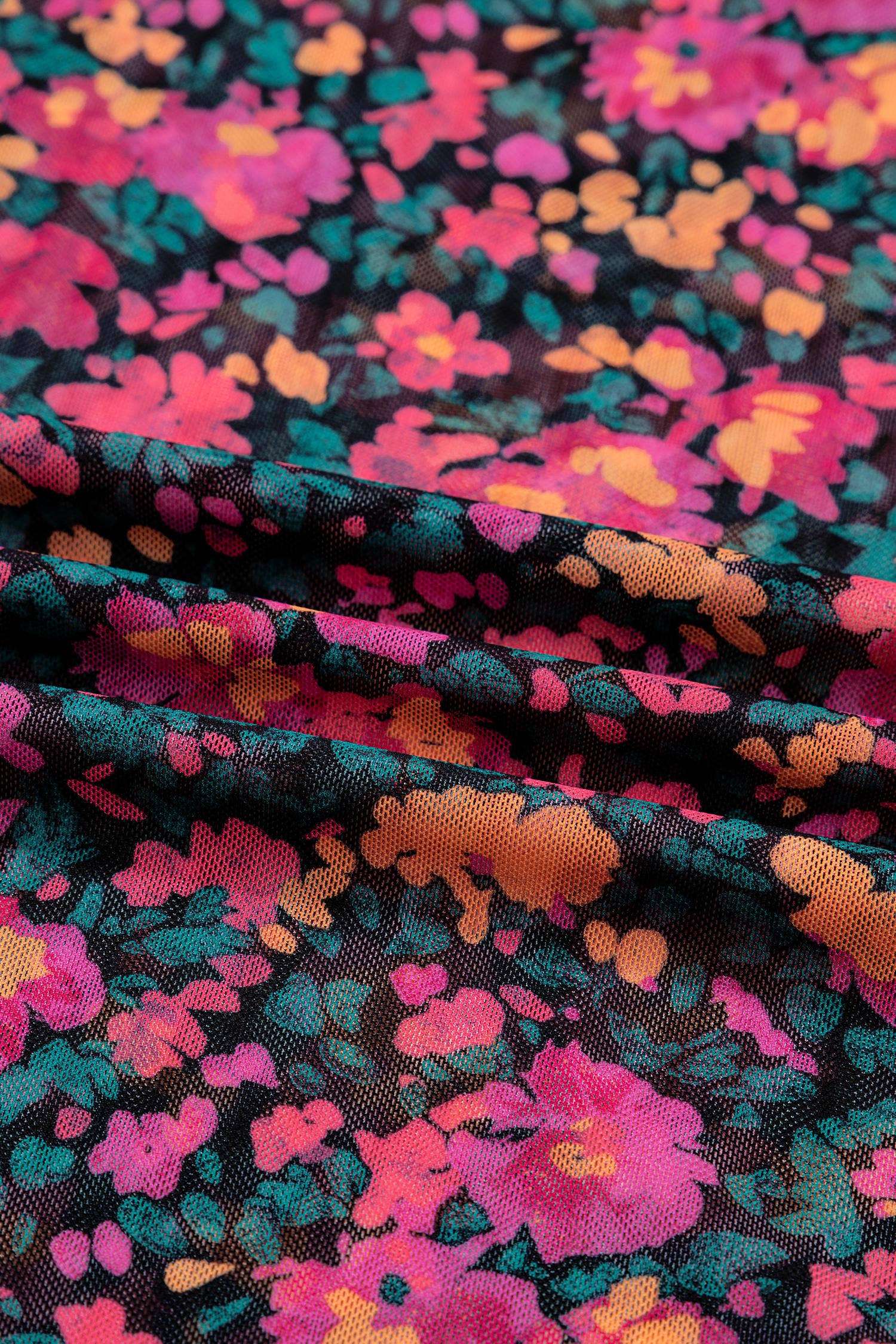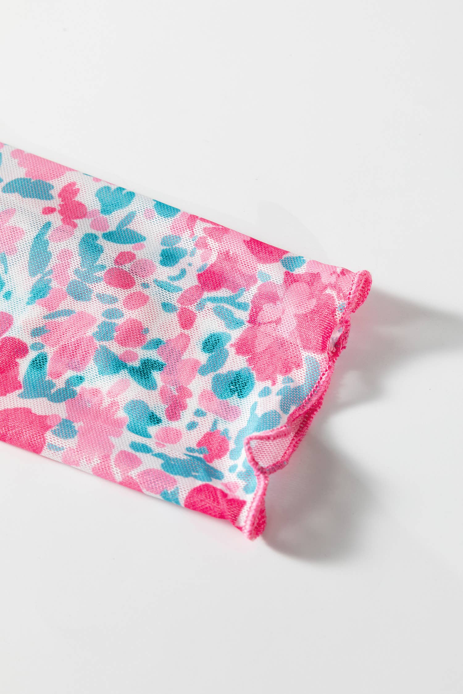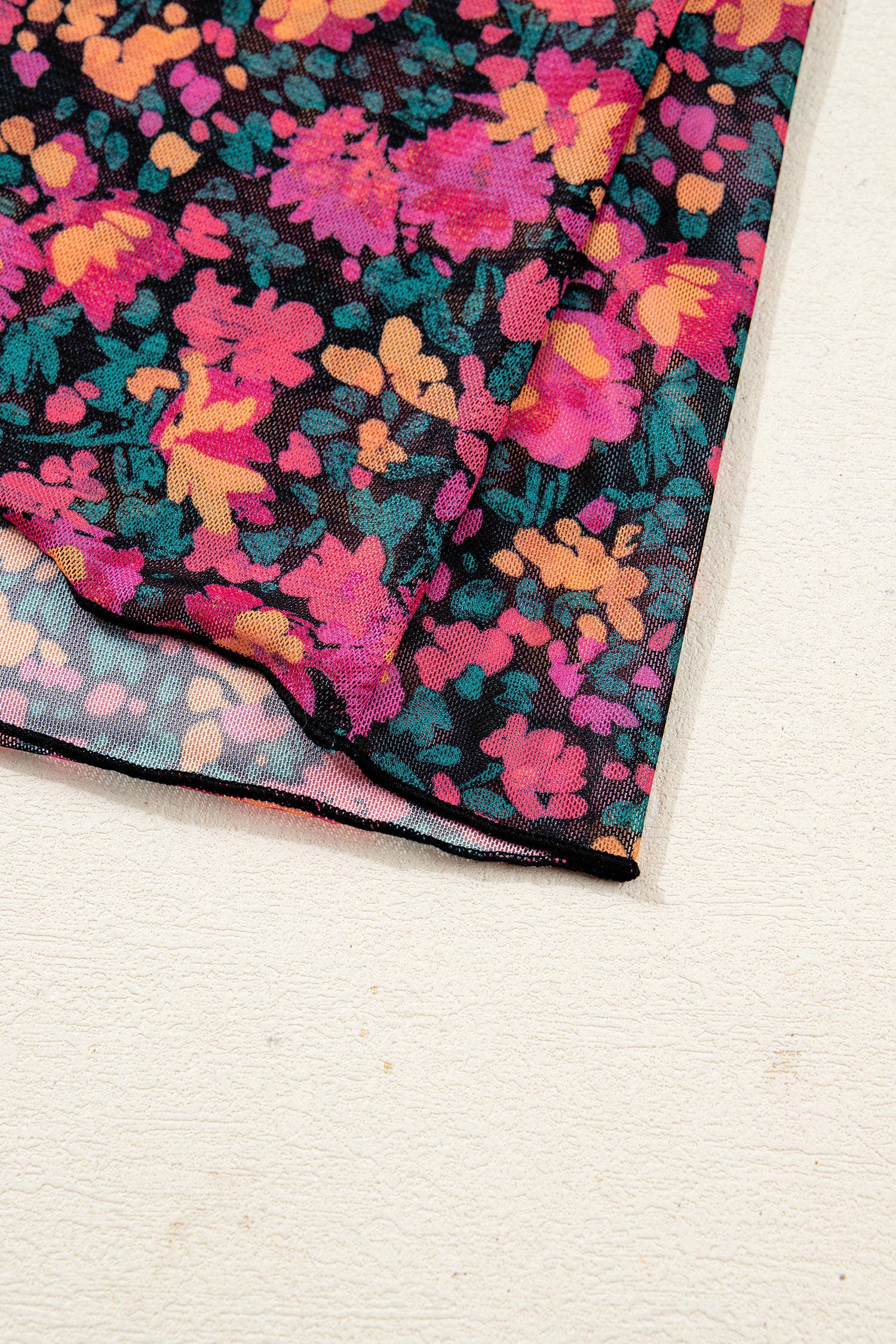 Floral print mesh adds a delicate, feminine touch.