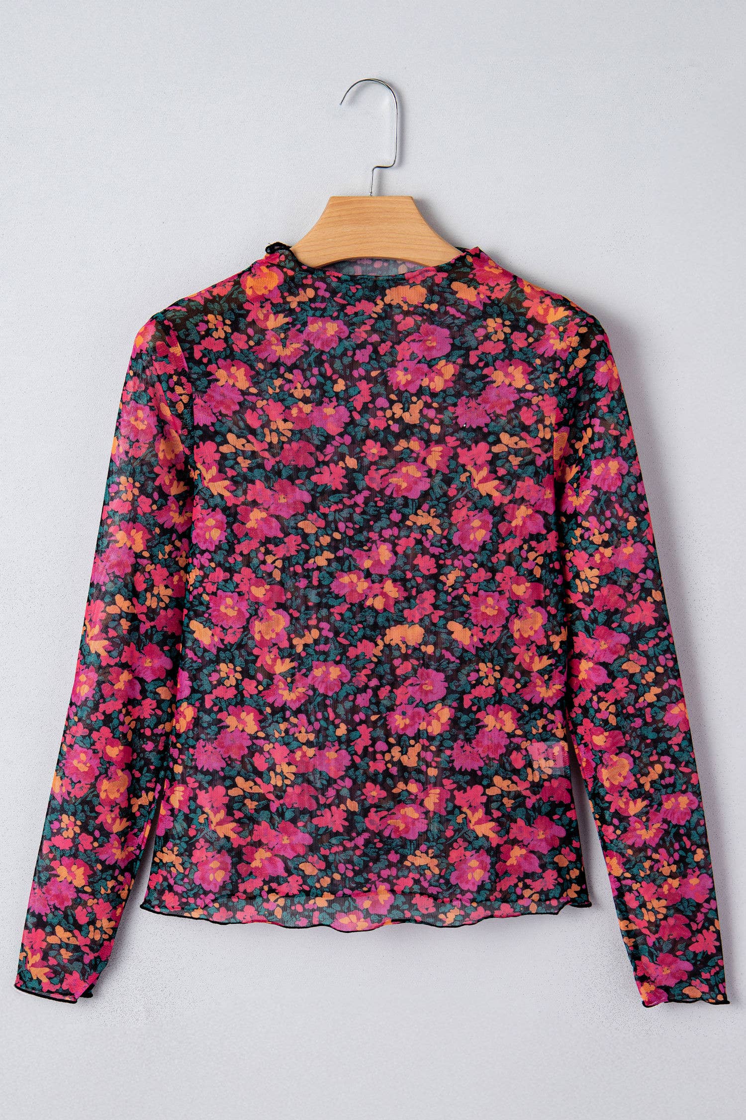 Long sleeves and sheer design create a stylish, lightweight silhouette.