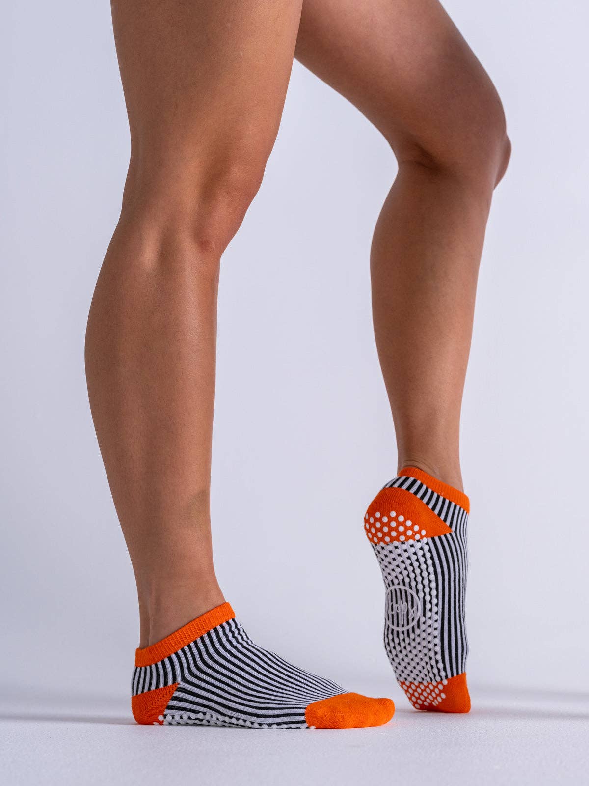 Our ankle grip socks are crafted from premium combed cotton with long-lasting silicone grips that cover the entire sock base, providing exceptional stability and support for any form of movement. The durable silicone base ensures you stay steady, while built-in arch compression offers extra support.