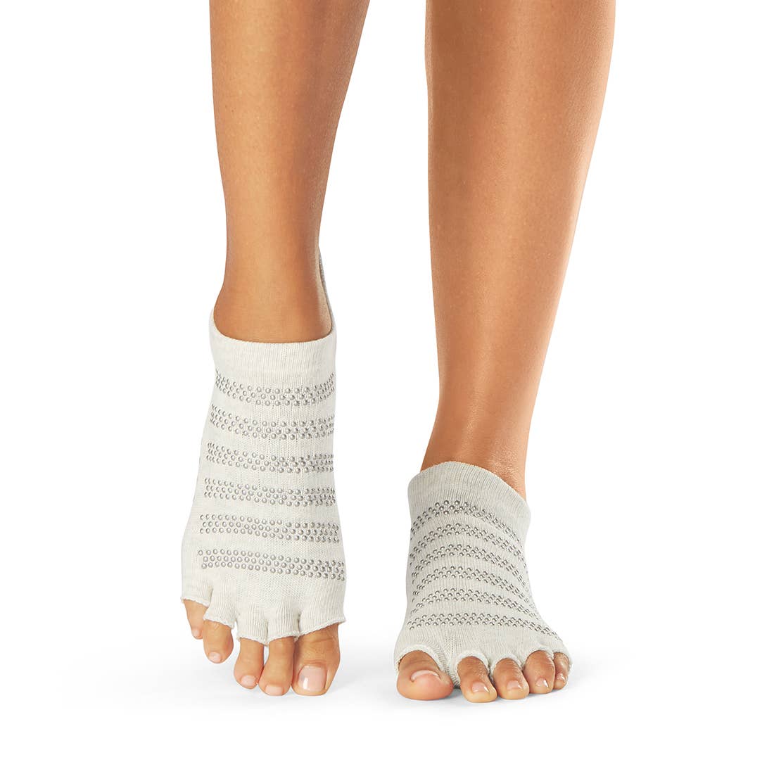 Low rise toe socks hug your foot below the ankle and feature ToeSox patented nonslip sole for secure footing on any surface. Perfect grip sock for Yoga, Pilates and Barre. Made with super soft, organic cotton in a variety of great colors. Hygienic alternative to bare feet; protects against dirt + germs on floor and equipment.